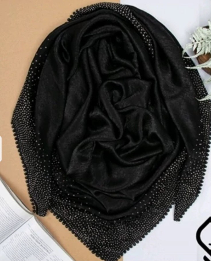 روسری مشکی فول نگین شیک ریزش نگین نداره قیمت مناسب جنس فوق العاده عالی 💖 بسیار کاربردی 💖 جنس عالی 💖مقاوم در برابر شستشو